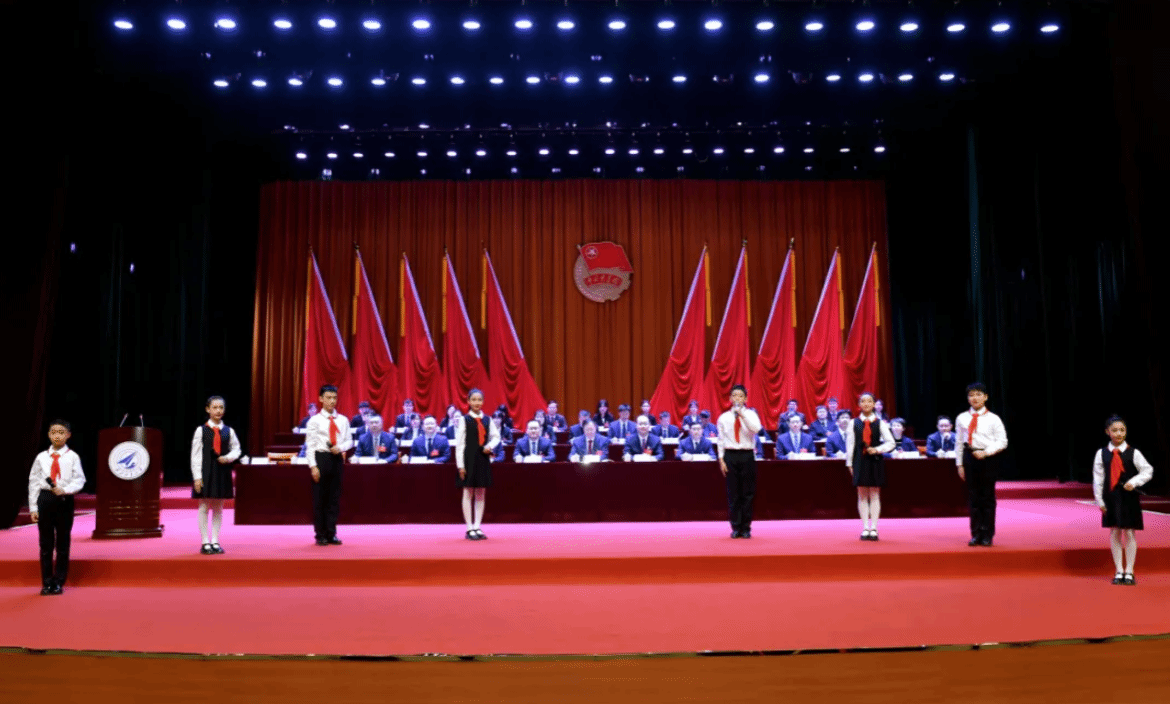 上午9时,大会正式开幕,全体起立高唱《中华人民共和国国歌》。来自西工大附小的8名少先队员代表在大会开幕式献词。