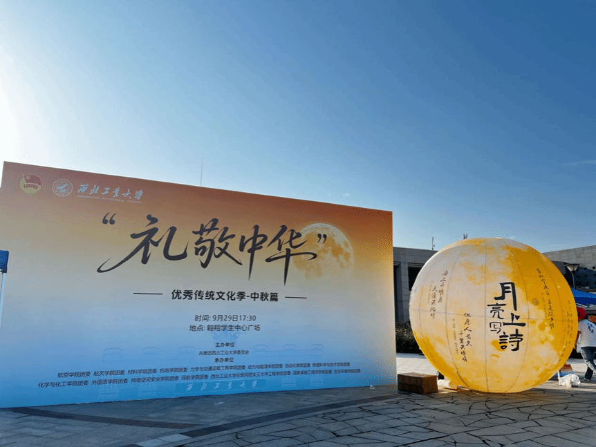 为深入弘扬中华优秀传统文化,庆祝即将到来的中秋佳节,丰富我校师生校园文化生活,9月29日下午,西北工业大学第四届“礼敬中华”优秀传统文化季之中秋篇主题活动在翱翔学生中心广场圆满举办。本次活动由学校团委主办,相关学院团委承办,共吸引了千余名师生参与,现场欢声笑语不断。