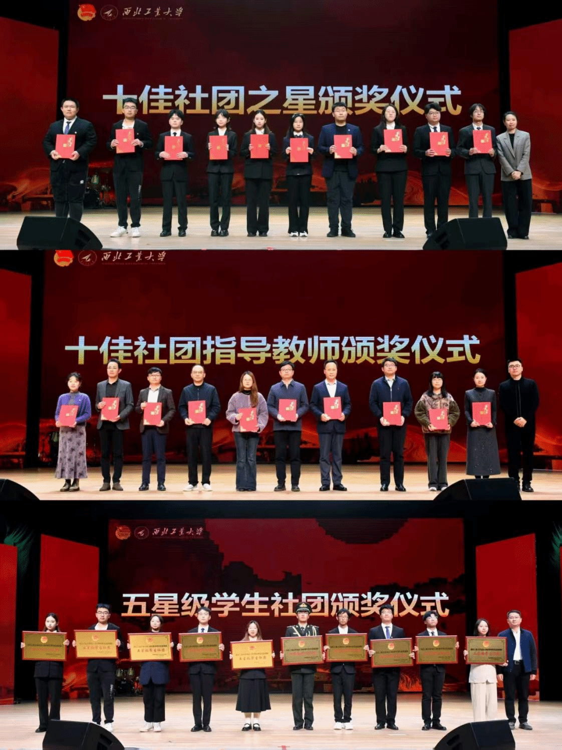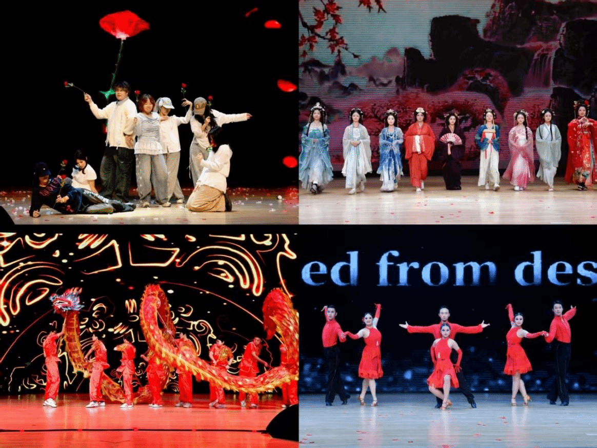 表彰仪式后,社团风采夜演出精彩启幕。整场演出分为“梦想启航・青春序曲”“岁月流光・青春忆往”“潮流工大・青春笃行”“逐梦苍穹・青春翱翔”四个篇章。舞龙表演《龙腾盛世》为演出拉开序幕,以磅礴舞姿彰显中华传统文化的魅力。歌曲《我爱你中国》、朗诵《满怀信心迈向“十五五”,跑好属于我们这代人的接力棒》用深情歌声和告白道出青年的赤子情怀;《闪亮全场》《Is this love》用动感舞姿点燃现场氛围;相声《数来宝》、戏曲《霸王别姬》尽显国粹艺术的永恒魅力;歌曲《飞云之下》《你要跳舞吗》旋律动人,展现青春风采;舞蹈《This is for》《Freed from desire》节奏明快,热情洋溢,将全场气氛推向高潮;礼仪展示《汉服华彩,礼韵长安》再现华夏礼仪之邦的风范;话剧《回响・能担当》诠释新时代西工大青年的责任与担当;声演剧《福尔摩斯的选择》展现了声音艺术的独特感染力;由9位学院团委书记表演的曲目《我们都是追梦人》为整场活动画上圆满句号,让“奋斗正青春”的誓言深深烙印在每一位青年学子的心中。整场活动通过歌舞、朗诵、戏曲、相声、话剧等多元艺术形式,展现了学生社团活动的丰富内涵与西工大学子昂扬向上的精神风貌。