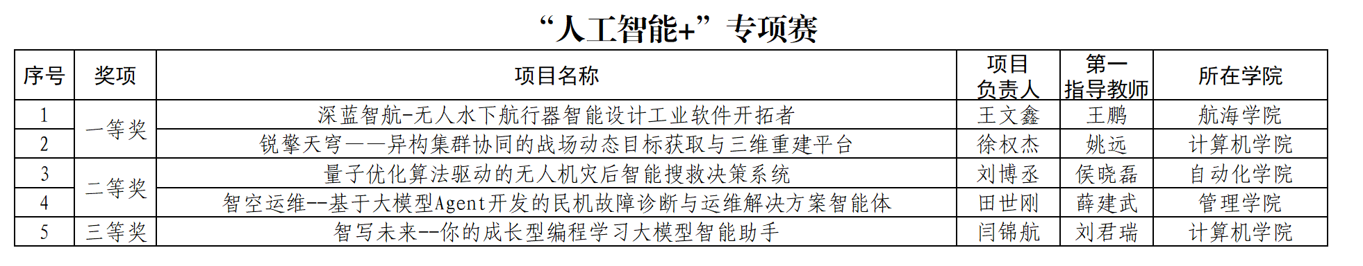 在“人工智能+”专项赛中,我校获一等奖2项、二等奖2项、三等奖1项。