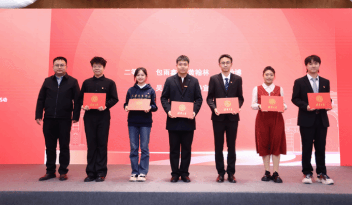 共青团中央宣传部部长洪亮为参与2025年接力宣讲活动的高校青年宣讲团体颁发证书