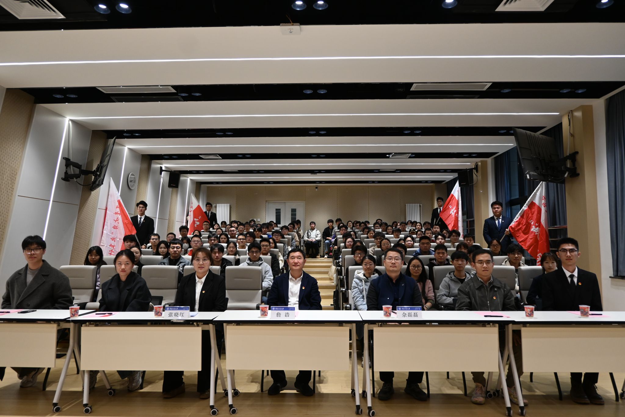 举办第十八期“青马工程”开班仪式,校党委副书记、副校长詹浩为“青马工程”培训班功能型团支部授旗并讲授开班第一课,勉励大家自觉做新时代党的创新理论的坚定信仰者和忠实实践者。