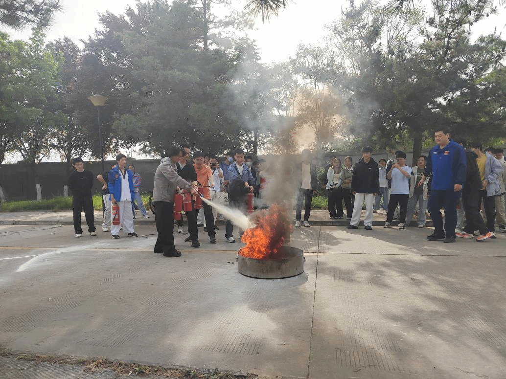 理论培训结束后,全体师生参加了消防演练。在党委保卫部老师指导下,同学们分组使用干粉灭火器扑灭模拟初期火灾,亲身体验从发现火情、报警到正确灭火的完整流程。演练过程紧张有序,达到了预期效果。