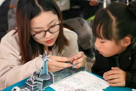 下午的动手实践环节更是热闹非凡。队员们带来了“兰州号”驱逐舰纸模,手把手指导孩子们分组拼装。小小的课桌变成了“造船车间”,孩子们专注地辨认零件、拼接舰体、粘贴细节,不时互相协作、交流技巧。一小时后,一艘艘精致的 “兰州号” 成功 “下水”,孩子们举着亲手制作的模型在操场上奔跑欢呼,模拟舰船航行的场景,清脆的笑声回荡在青山绿水间,将科普活动的气氛推向高潮。